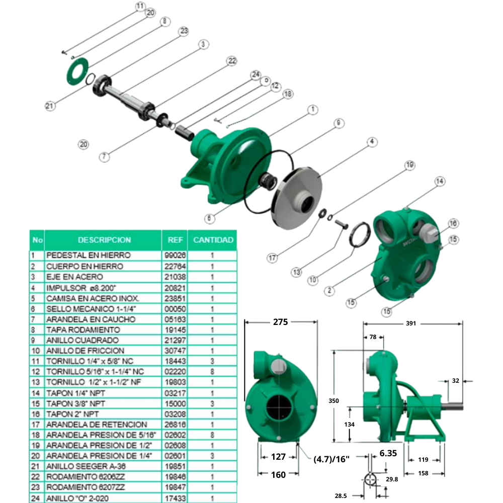 | DESCARGA | 3″ NPT |
